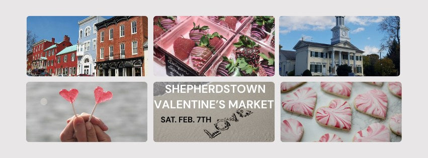 You're invited to the 10th annual Shepherdstown Valentine’s Handmade Market! Saturday, Feb. 7th, 2026 from 11 am to 5 pm at the War Memorial building, in beautiful historic Shepherdstown. Shop from a variety of locally made handmade gifts for your Valentine! Door prizes of handmade and local items!